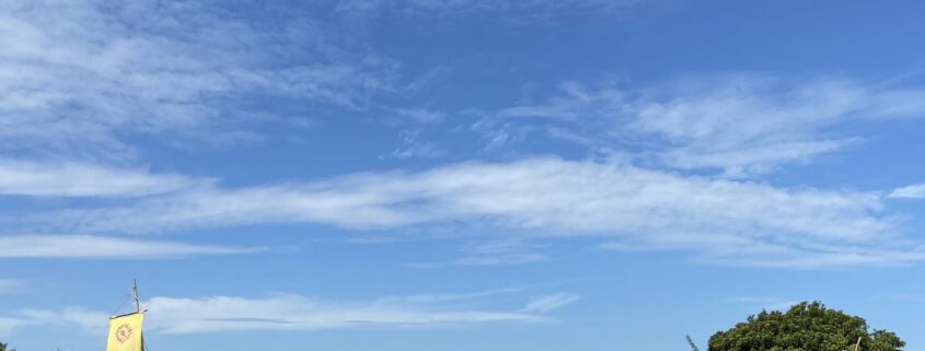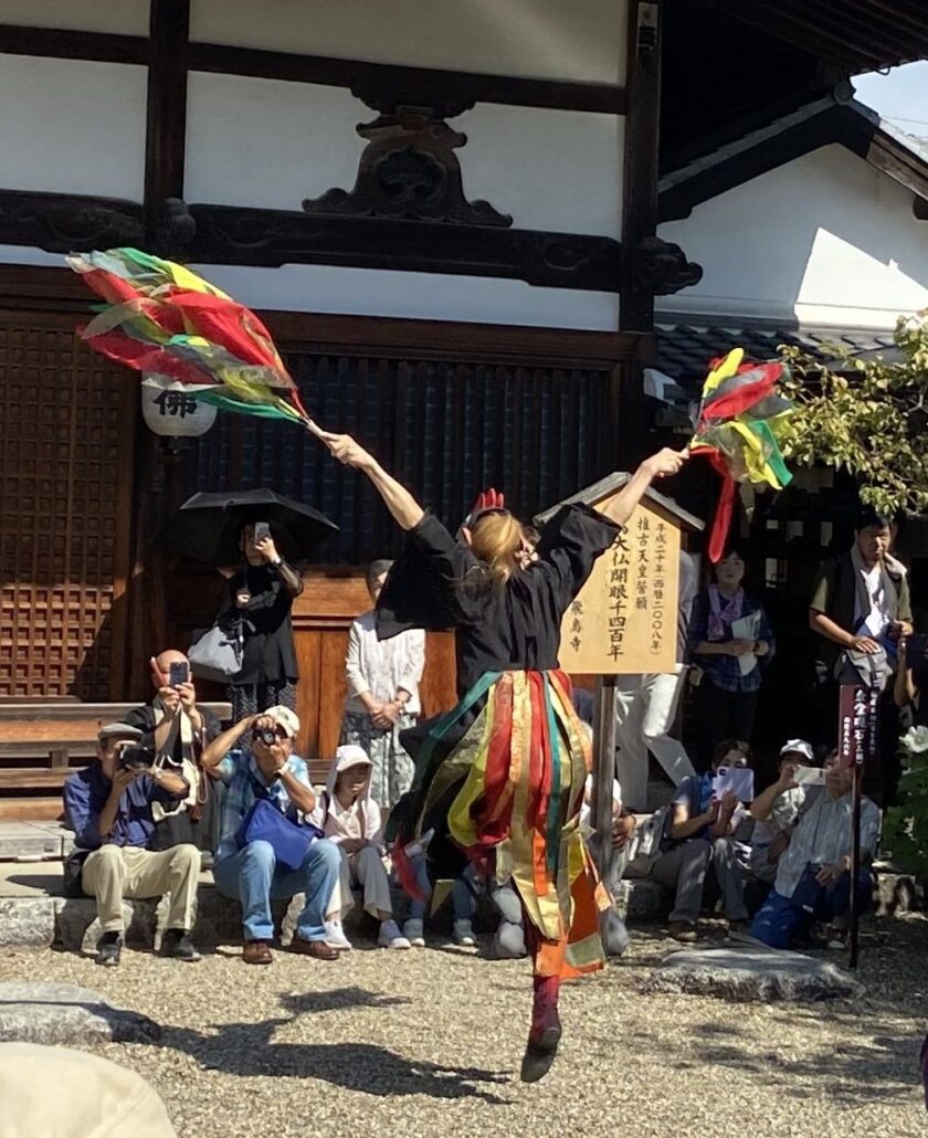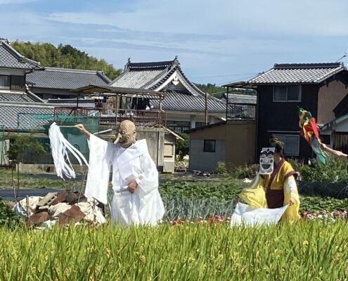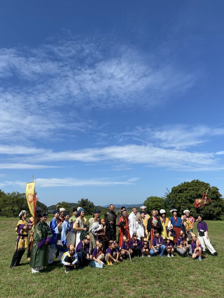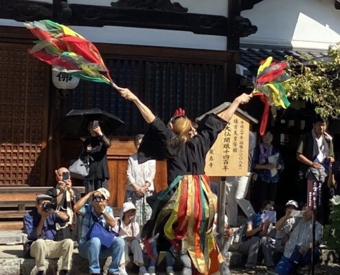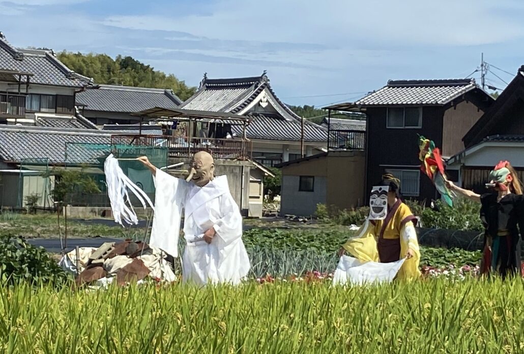 秋の快晴のなか、古代の伎楽の行進を明日香村で再現する「GIGAKU行道(ぎょうどう)」が9月27日に開かれました。